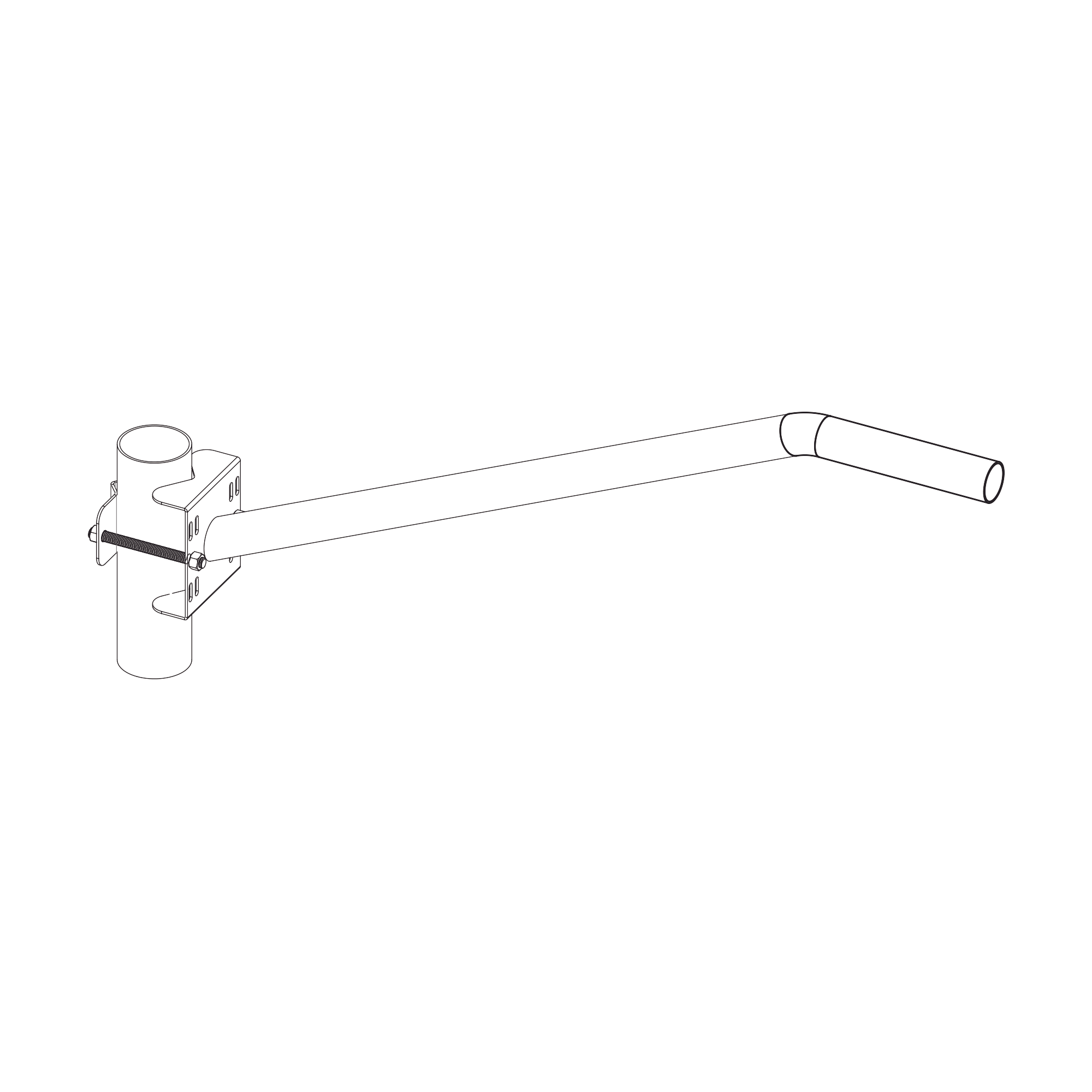 Brazo Galvanizado para Luminaria 2" Diámetro con Abrazadera para Poste hasta 3" Diámetro.