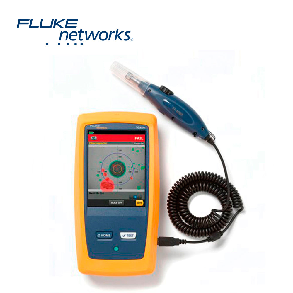 FI-500 FLUKE NETWORKSCAMARA DE INSPECCION DE FIBRA OPTICA PANTALLA A COLOR Inspeccione todos los tipos de fibra instalada con el FI-500. La herramienta de inspección de fibra portátil proyecta una imagen nítida de escombros microscópicos...