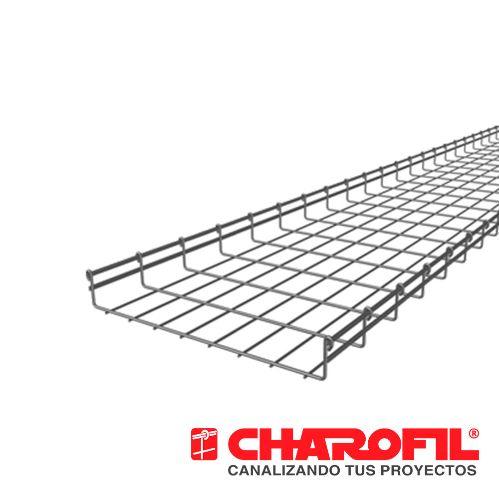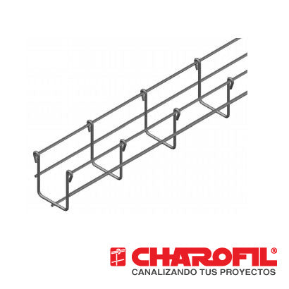 MG-50-430EZ CHAROFIL Charola tipo malla 66 mm de alto, 50 mm ancho Fabricado con acabado Electrozincado EZ. Ideal para uso en interiores. Tramo de 3 metros. Capacidad de carga de 25Kg/m entre apoyos a 1.5...