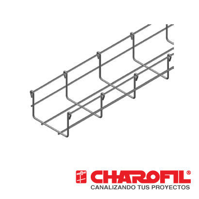 MG-50-431EZ CHAROFIL Charola tipo malla 66 mm alto, 100 mm ancho Cuenta con peralte de 66mm y ancho de 100mm. Fabricado con acabado Electrozincado EZ. Ideal para uso en interiores. Tramo de 3 metros. Capacidad...
