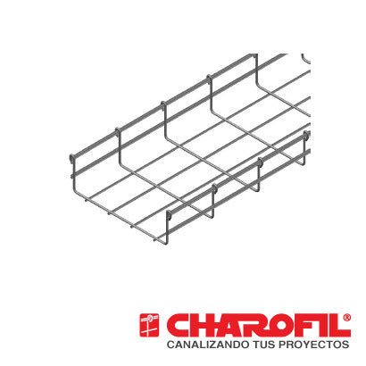 MG-50-433EZ CHAROFIL Charola tipo malla 66/200mm Cuenta con peralte (alto) de 66mm Ancho de 200mm. Fabricado con acabado Electrozincado EZ. Ideal para uso en interiores. Tramo de 3 metros. Capacidad de carga de 50Kg/m entre...