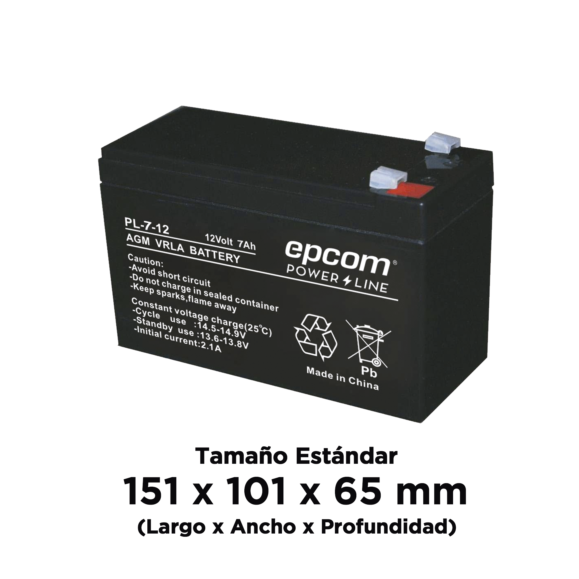 Batería AGM / VRLA / 12 Vcd / 7 Ah / TAMAÑO ESTANDAR ( 151 x 101 x 65 mm)