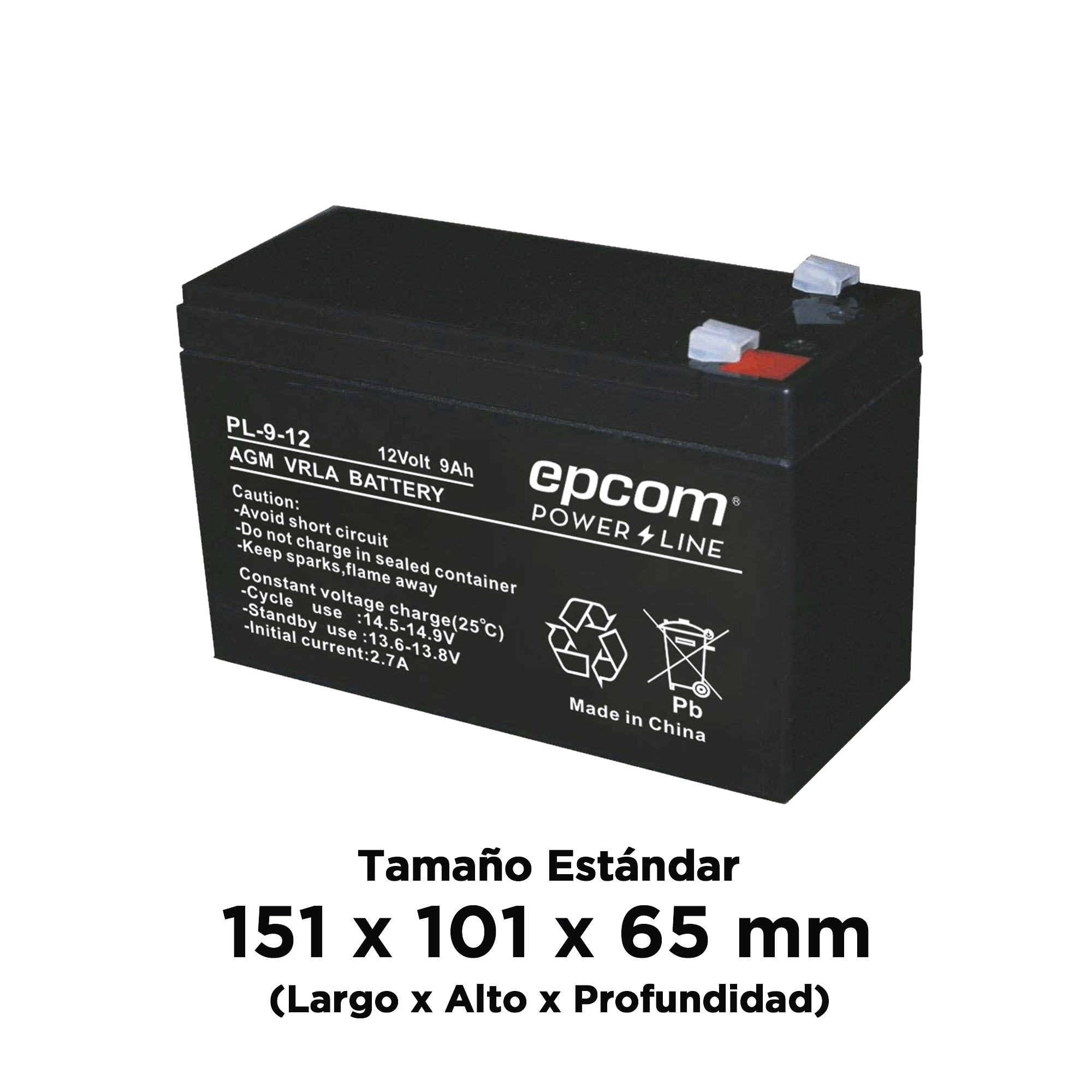 Batería AGM/VRLA / 12 Vcd / 9 Ah / TAMAÑO ESTANDAR ( 151 x 101 x 65 mm)