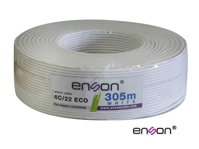33201W100 ENSON   Cable de alarma 2C/22AWG    Número de hilos:2  Empaque:Rollo 100m  Diámetro AWG:22AWG (0.644mm)  Aislante:SR-PVC | ID 1.4 mm / Espesor: 0.32mm / Diametro Interior: 1.4mm  Jacket:PVC Blanco / Espesor:0.5mm / Diametro Exterior: 2.4*3.8mm  Material:PVC  Aplicación:Interior  Tipo: Multifilar